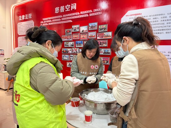 吃汤圆、送汤圆、猜灯谜、领礼品……几百名一线工作者现场参与互动,150余位环卫工人、快递小哥、外卖骑手等一线工作者来到空间端着汤圆边吃边猜,这些融合民俗、慈善、地名及安全知识的灯谜,引得大家集体讨论,开怀大笑;现场还开展非遗花灯制作,成品用于慰问困难老人,让民俗暖意传递到位。